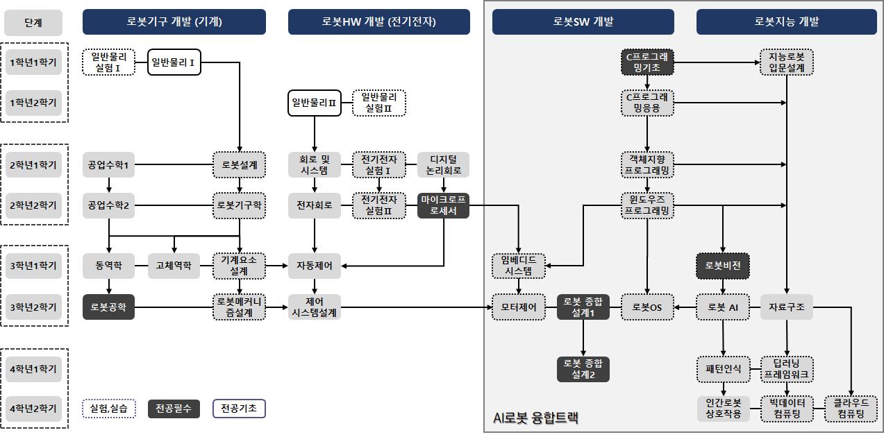 | 이수대상 | 로봇기구 개발역량 | 로봇하드웨어 개발역량 | 로봇소프트웨어 개발역량 | 로봇지능 개발역량 | |